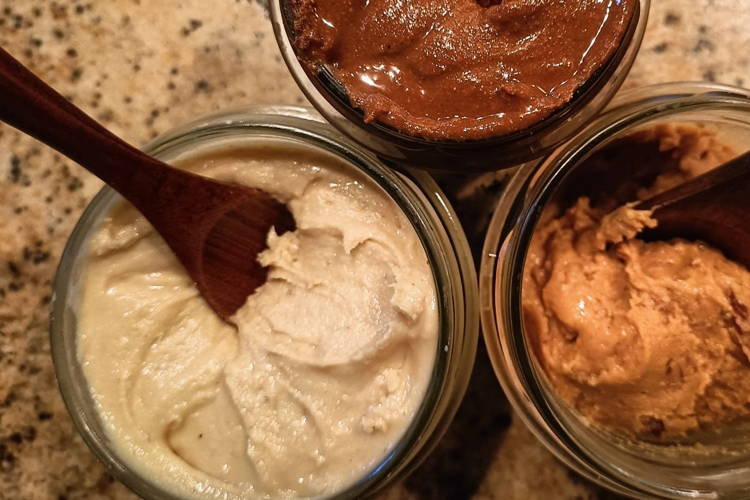 Noten als cashew, walnoot en hazelnoot; zaden als zonnebloempitten, pompoenpitten en hennep. En natuurlijk niet te vergeten: pinda’s. De totaal eigen smaken van deze noten en pitten kun je verrijken met onder andere kruiden, specerijen en zuidvruchten. Je ontdekt een palet aan nieuwe smaken – perfect om te smeren op brood of te gebruiken als basis voor sauzen en dips.
