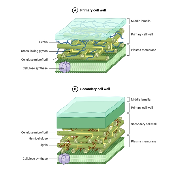 De secundaire celwand, die stevigheid en bescherming biedt voor de plant, maar de verteerbaarheid vermindert, begint zich pas later te vormen – meestal bij het ontwikkelen van de echte bladeren, en na de ontwikkeling van de kiembladen.