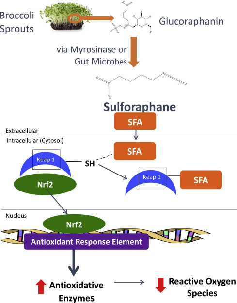 - De in broccoli van nature aanwezige enzym myrosinase wordt inactief bij een verhitting van ongeveer 60-70°C. Zonder dit enzym kan glucorafanine niet worden omgezet in sulforafaan in mond of maag.