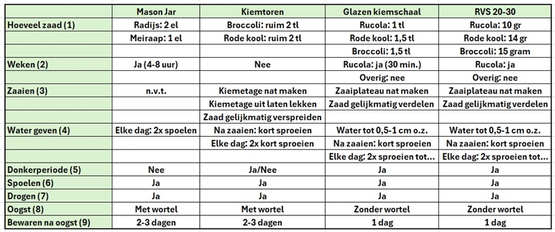 Wat al deze kiemgroenten gemeen hebben, is dat ze eenvoudig zijn om het hele jaar door thuis kunnen worden geteeld. Zonder kas, zonder tuin en zonder lange aanvoerketens. Zelfs midden in de stad kun je zo een deel van je verse voeding zelf telen.